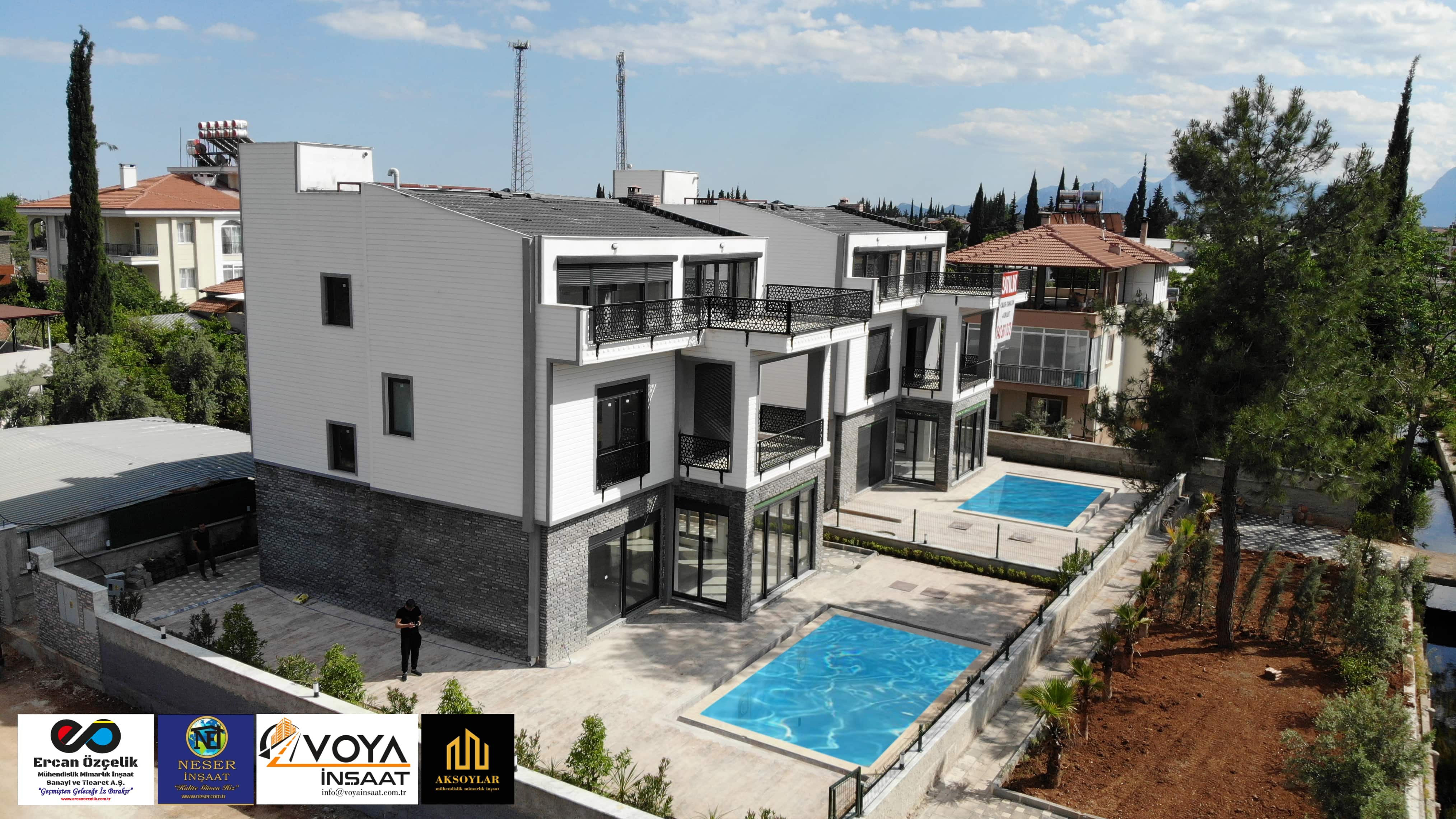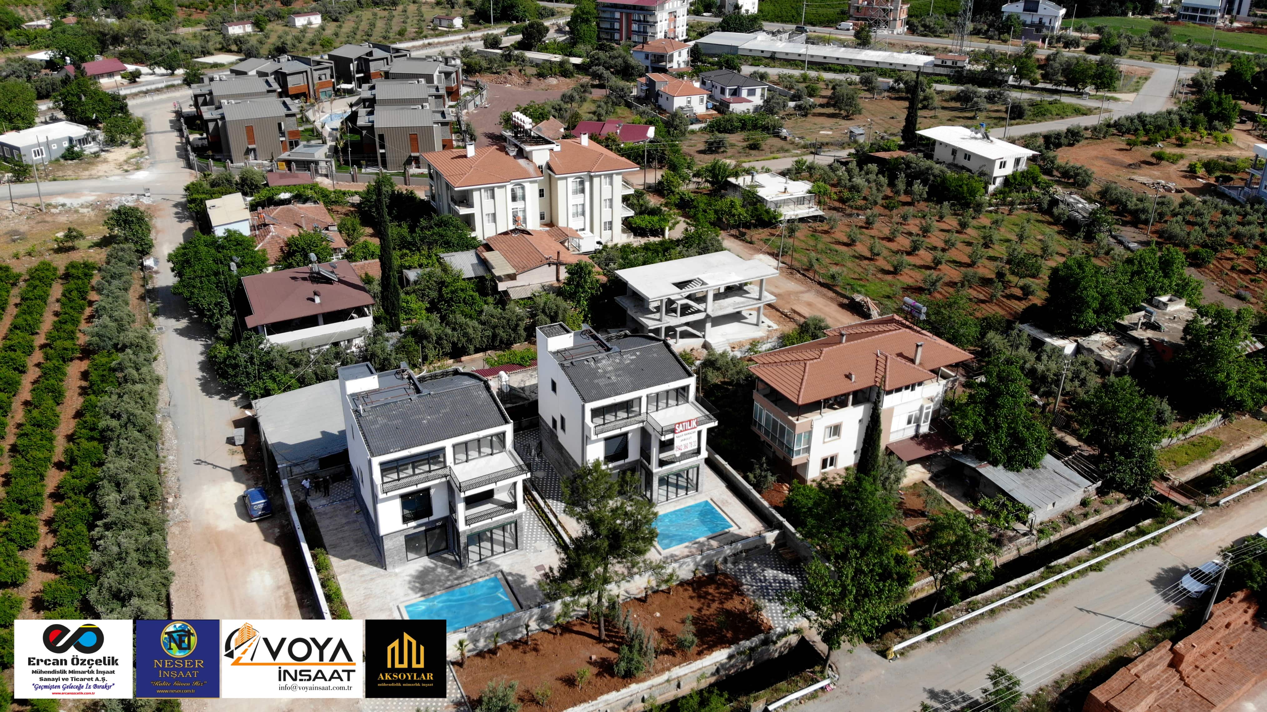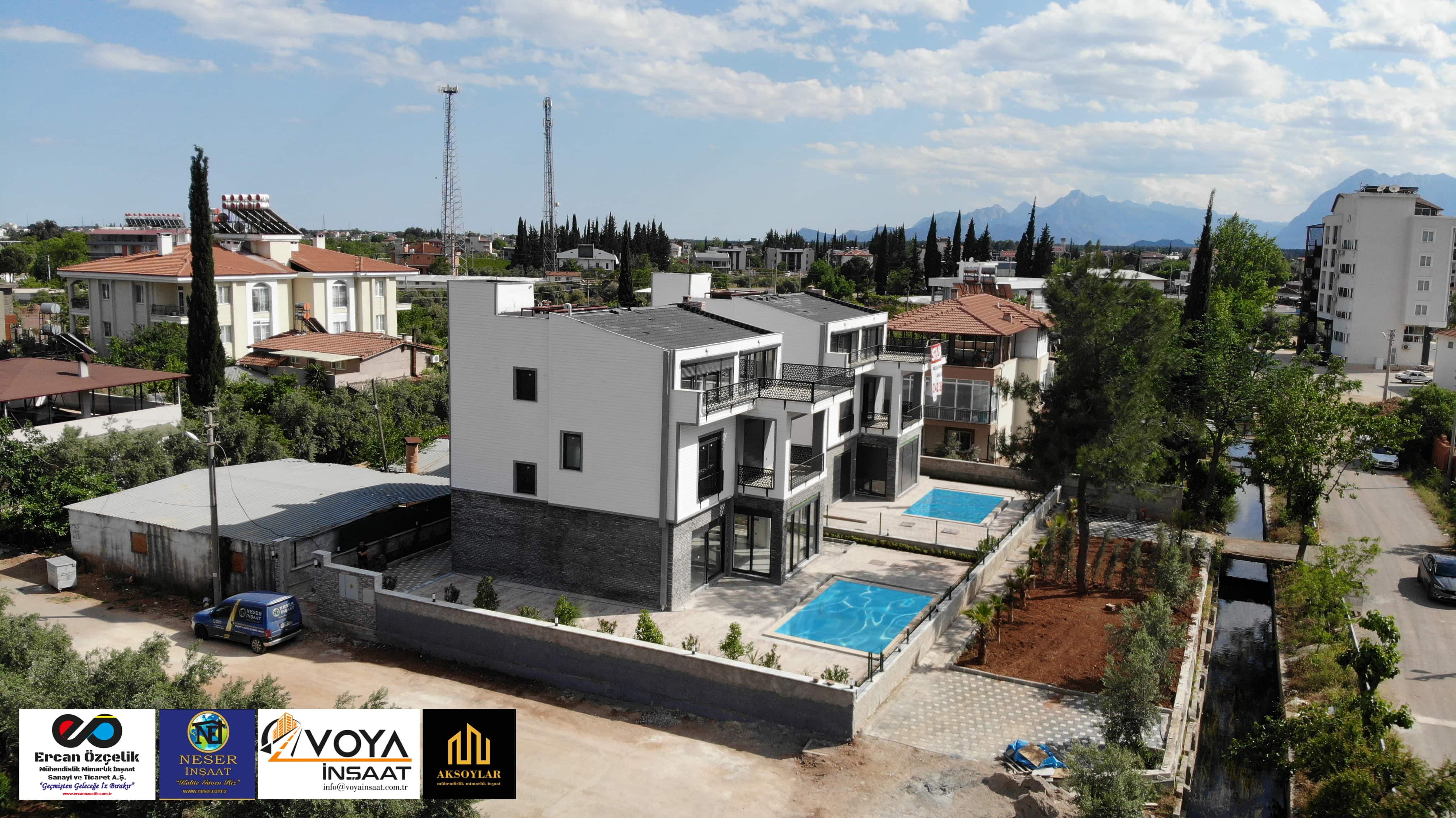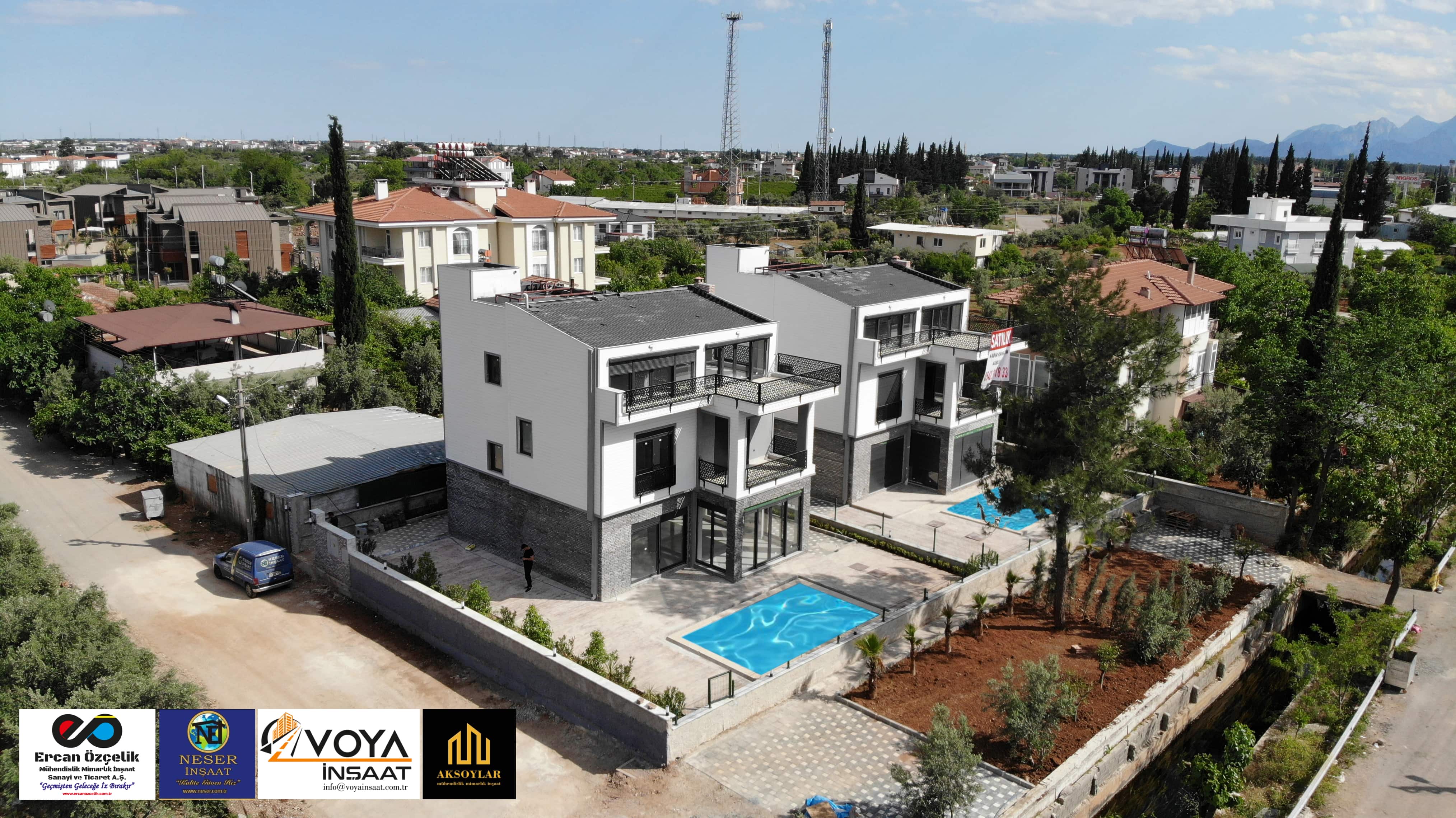 Antalya ili, Döşemelatı ilçesi, Bahçeyaka mahallesinde bulunan ikiz villalarımız toplamda 700 m2 alana yapılmış olup her villamız 280 m2 ve 6+1 dir.